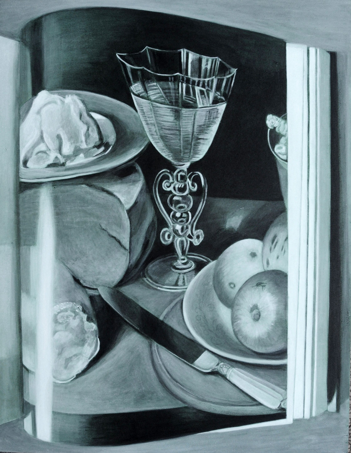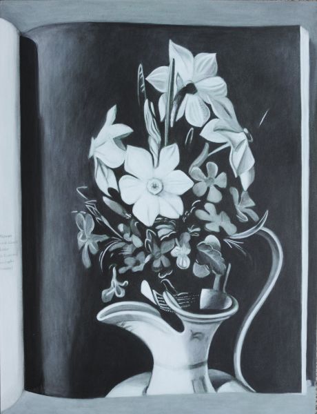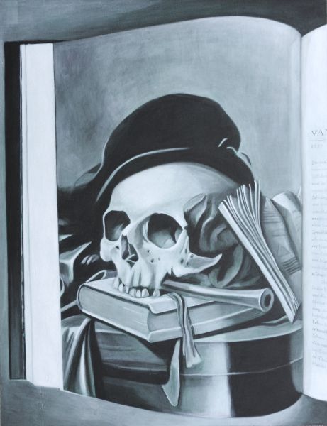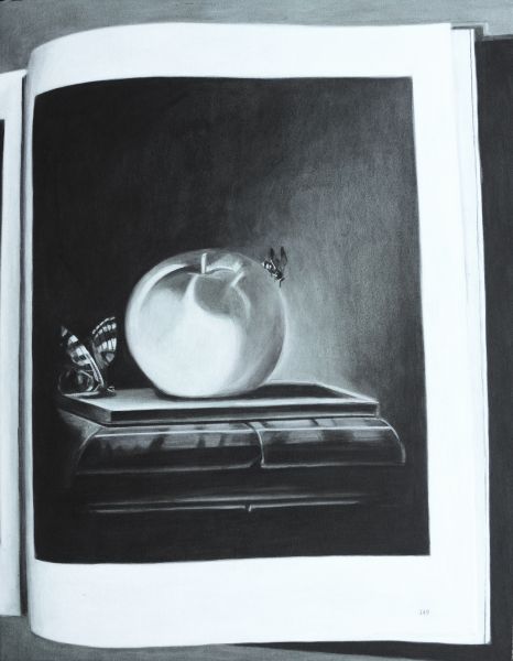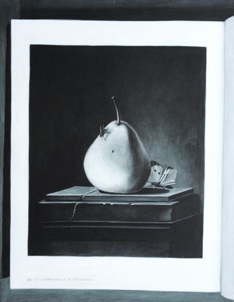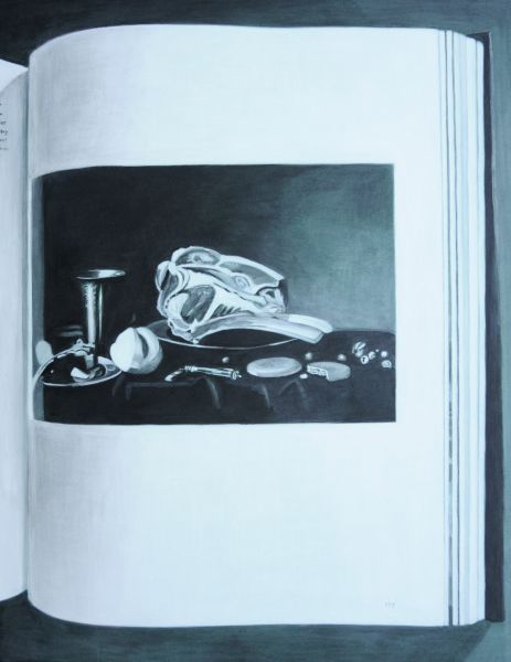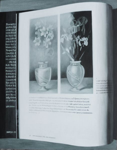 Das Stillleben, ein Konstrukt aus der Gegenwart für die Ewigkeit. Der faszinierende Blick auf nicht lebende aber keineswegs leblose Gegenstände. Die Wirkung einer perfekten Illusion. Das Bild im Bild – nicht «perfekt», sondern gar zerstörerisch durch Verzerrung, Text und Lichtreflexe der Gegenwart. Das darstellende Bild als Erinnerung an das Geschehene, an den Moment, die neue Gegenwart. Das Hin- und Hergerissensein zwischen Produktion und Reproduktion, zwischen verschiedenen Schichten der zeitlichen Verknüpfung.
